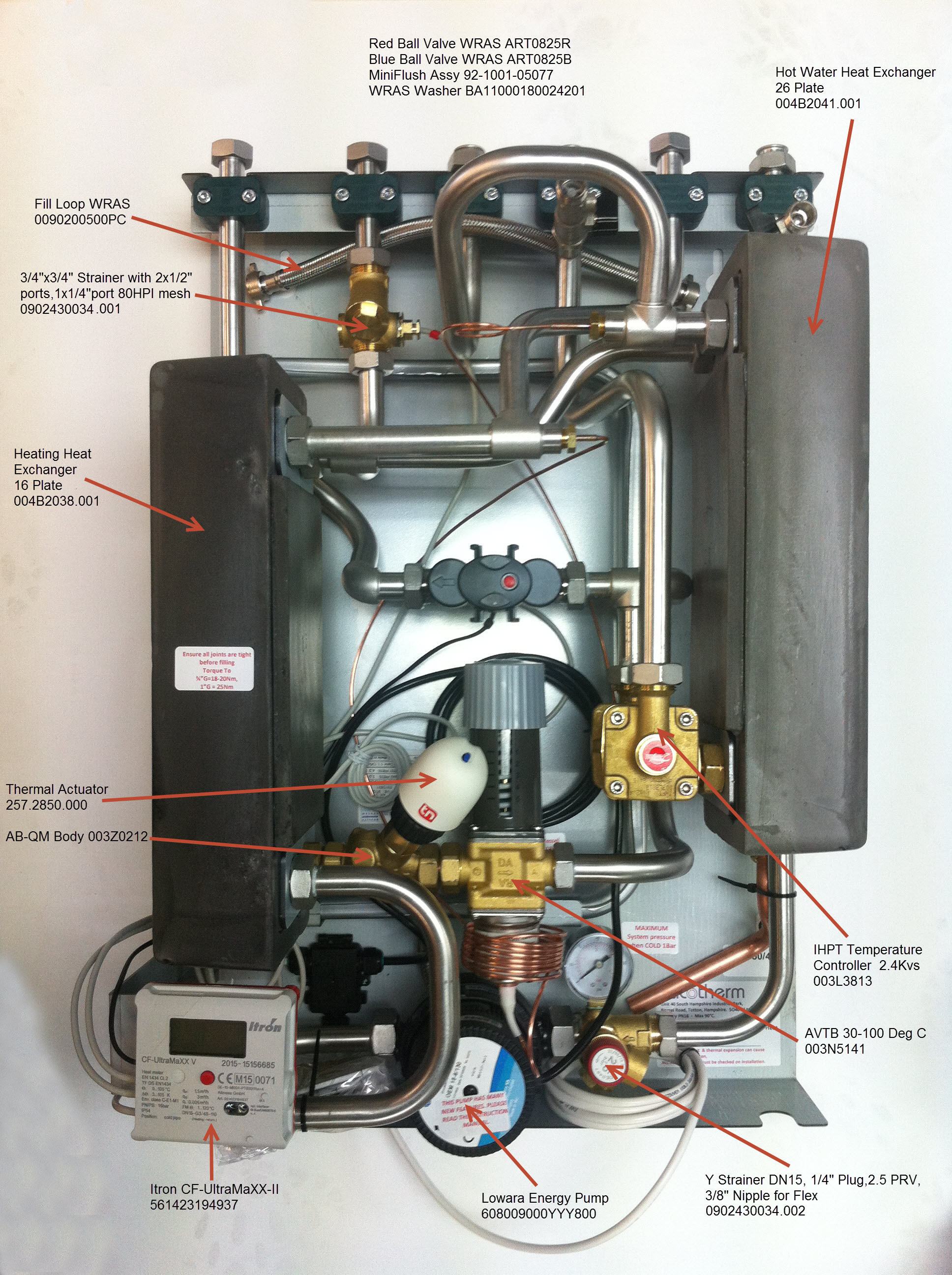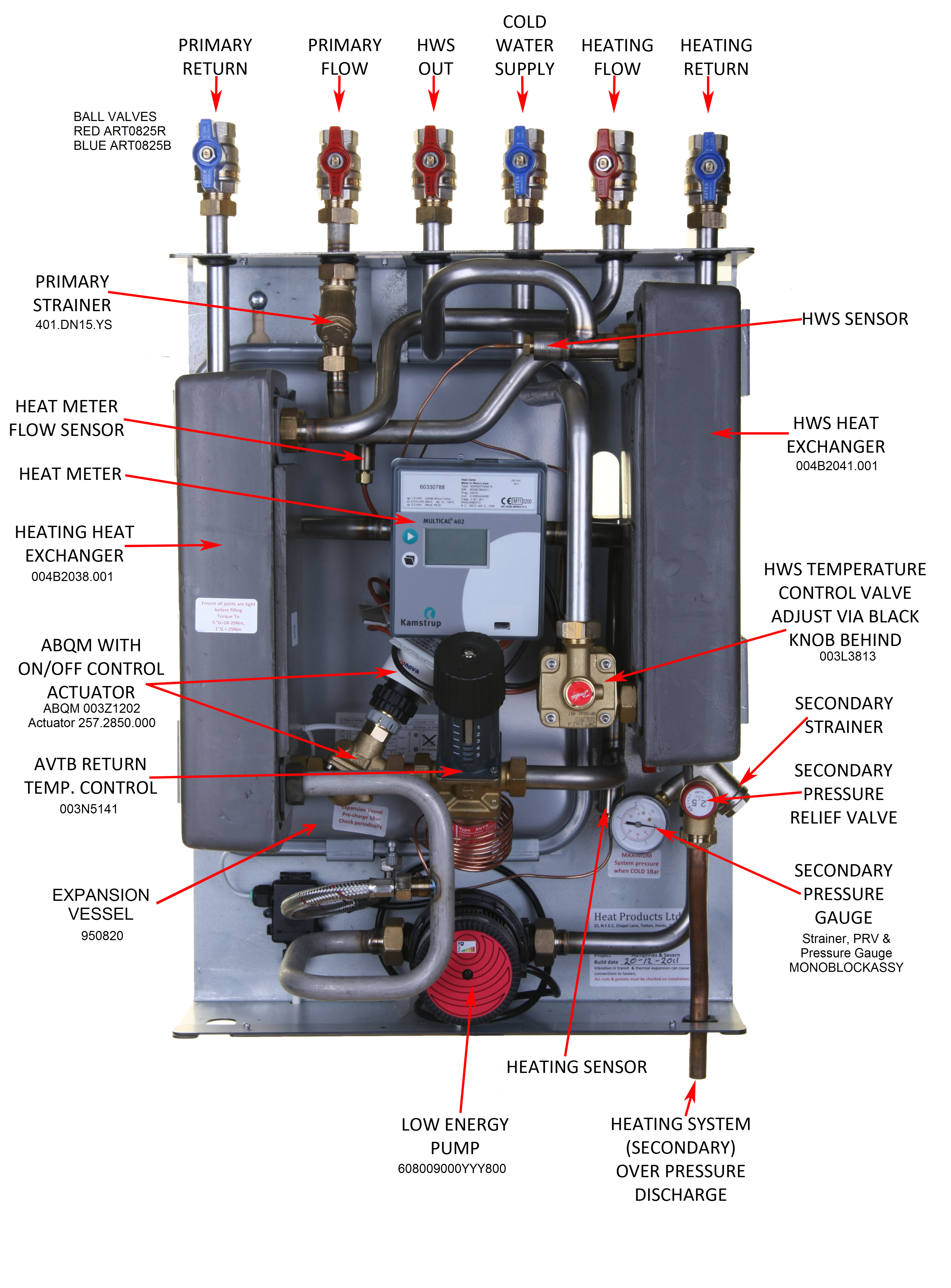 The IHPT controller controls the domestic hot water (DHW) by taking both flow volume and temperature into account. During tapping the valve opens and the thermostat starts to control the DHW temperature. The control is independent of varying tapping flows, supply temperature and differential pressure. When tapping ends, the valve closes immediately. This protects the heat exchanger (HEX) from scaling.